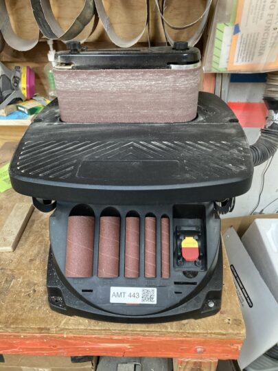 - Examine the other sanding belts: remove any that are no longer safe to use (shredded, worn out). If it is the last of that grit order replacements.